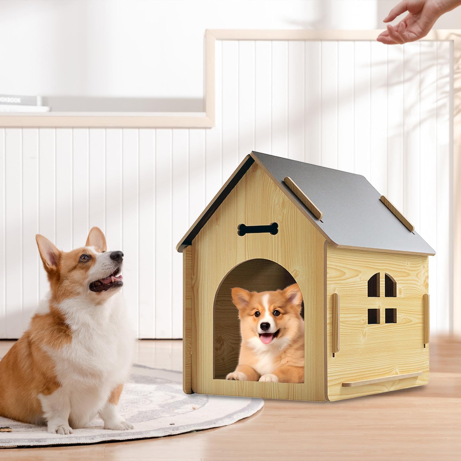 - Exquisitamente elaborada: la casa para perros de madera garantiza la seguridad y comodidad de su mascota con superficies lisas y sin rebabas. Cada pieza está diseñada con precisión y mano de obra fina para brindar un espacio de actividad de alta calidad donde su amigo peludo pueda jugar y descansar sin sufrir daños.