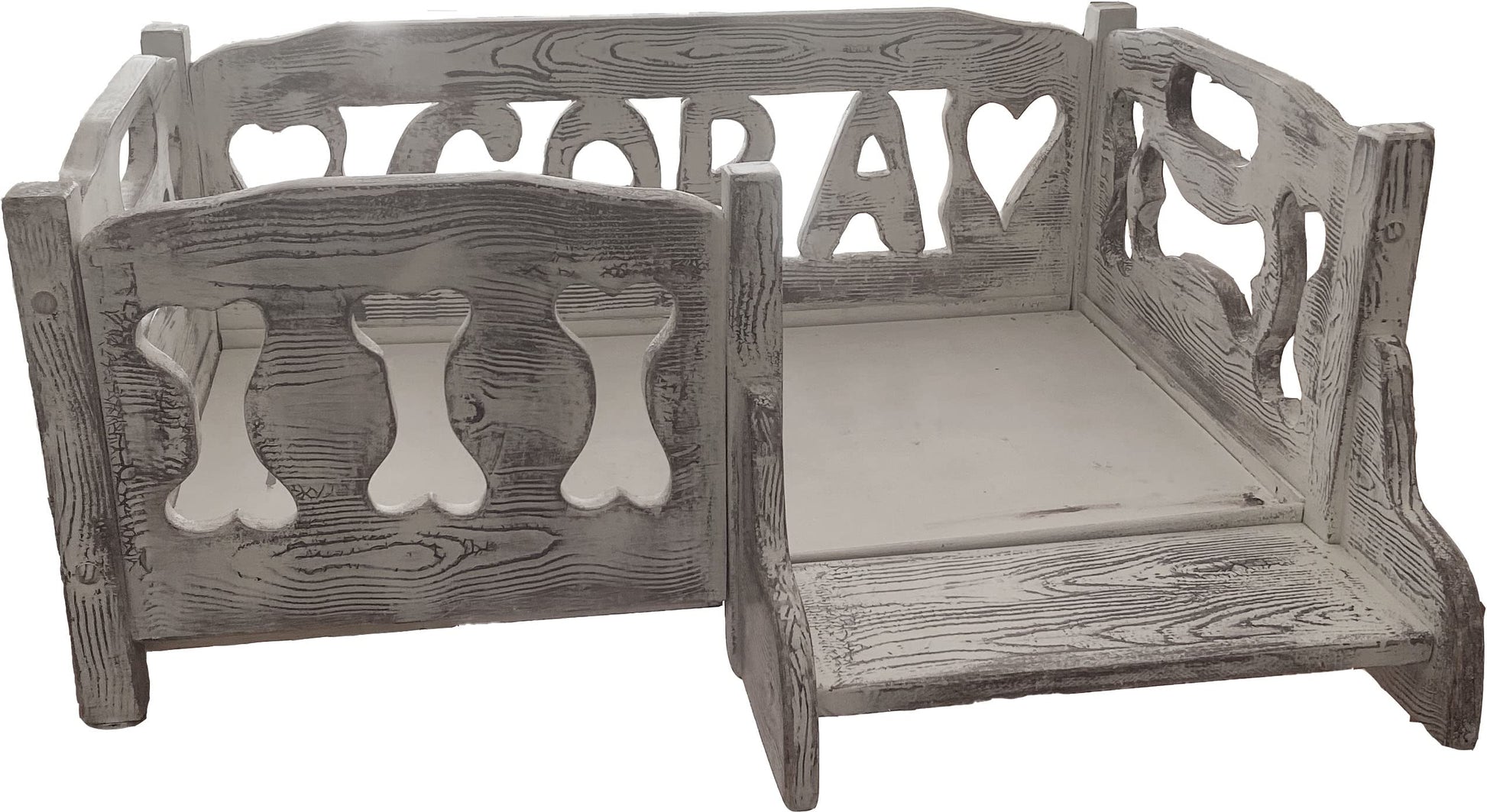Genérico Cama para Perro en Madera de Pino, Tallada, barnizada en Blanco con veta Madera de Fondo